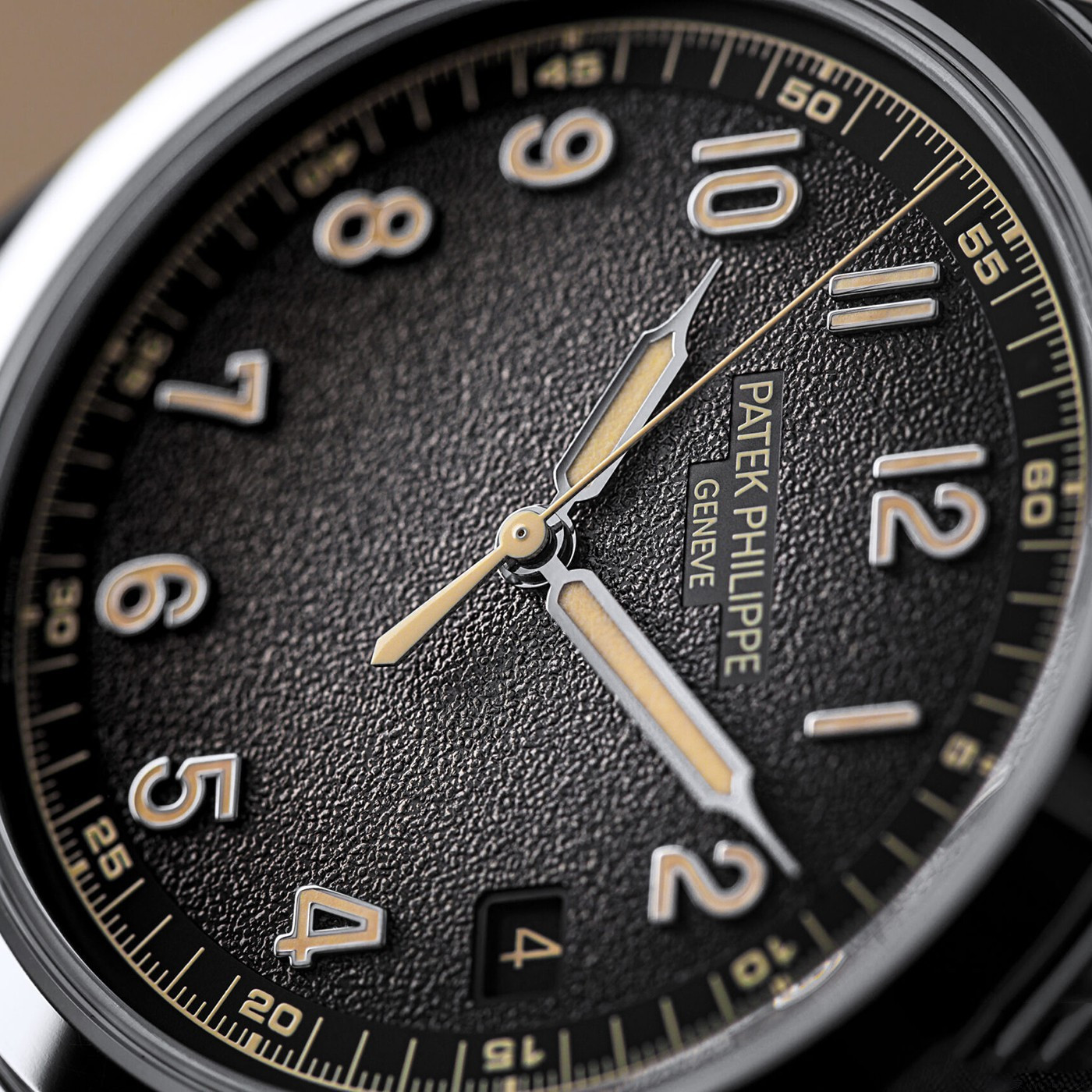 The dials of 5226 and 5326 have grain decoration. Patek Philippe boss Thierry Stern said that when designing the 5226 and 5326, he did not want the dial to be just black, but wanted to show more details. The boss said that he was at a friend’s house and saw the body of an antique camera with this old texture. He got inspiration from this, and made this grainy feeling on the dial of the new 5226 and 5326, adding details of the replica watch.